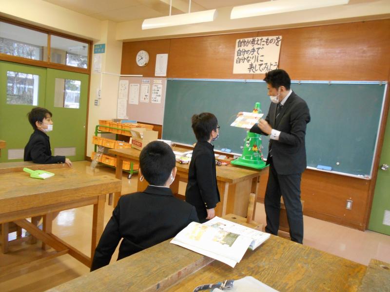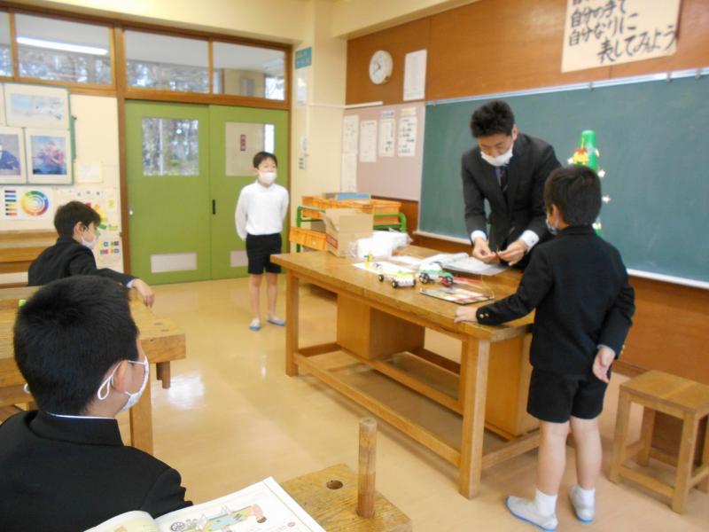 3限目、3年生は理科で、今までに学習したことを活かして作るおもちゃについて教頭先生から作品例を見せてもらい、どんなおもちゃにするか考えていました。空気を押し出す力や電気の仕組みを利用した「科学おもちゃ作り」に興味津々でした。その後は自分で黙々と作り始めていました。どんなおもちゃができるかとても楽みです。