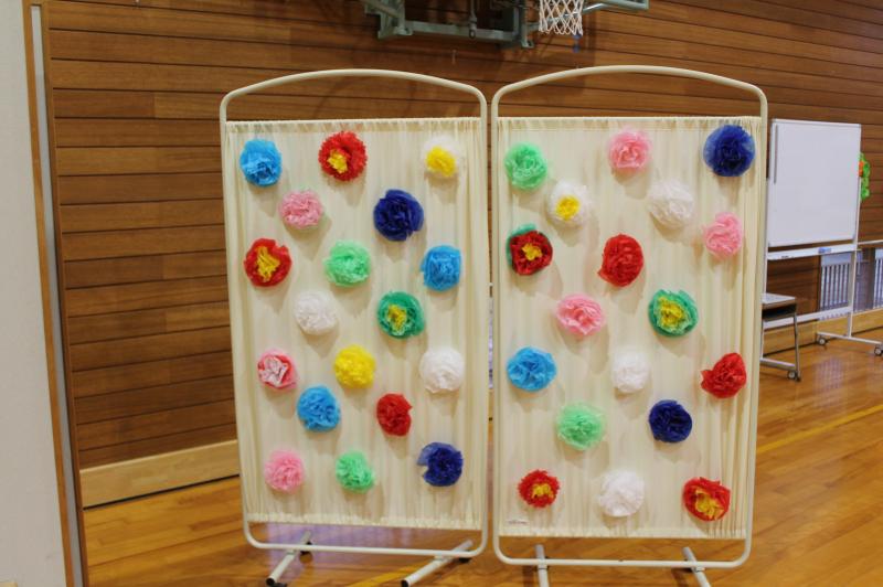 お花を飾ったついたてや、4年生の作った飾りも用意されてあり、いよいよ本番に近づいてきた感じがあります。