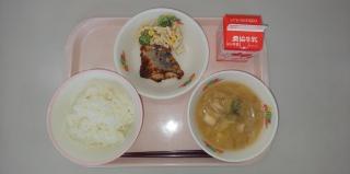 今日の献立は「加賀の献立」で、ごはん、さばの白こうじ焼き、加賀ッコリー豆腐サラダ、とり野菜でした。ブロッコリーは加賀が県内最大の出荷量です。高野豆腐を煮て冷ましたものと一緒に合えてサラダにしました。とり野菜は、加賀市で北前船の船主が、長い航海で栄養不足になる船頭さんのために考えた野菜たっぷりの汁物です。また、霊峰白山のふもとでは、古くから酒やみそなどの発酵食品が多く作られています。白こうじ焼きは、その発酵食品の白こうじにさばを漬け込んで、パリッと焼き上げました。お魚のさばには、けっこう細い骨がありましたが、1年生もしっかりよけてきれいに食べていました。とても人気でしたよ♪