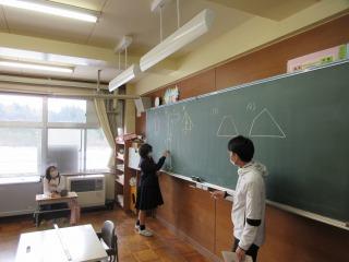 5年生はパワーアップタイムの時間に、算数の図形の問題を考えました。