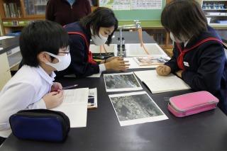 実際の川の様子が変化する前と後の写真から、どうして川の様子が変わったのか考えていました。