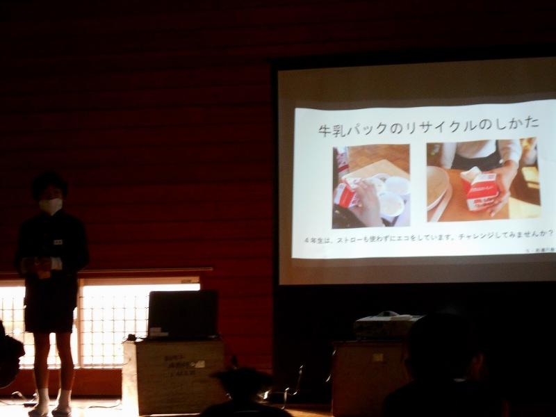 うきうきハッピータイムでは4年生がエコ活動の取り組みを発表してくれました。とてもよく調べてあり、わかりやすくまとめてあったという感想が多かったです。素敵な発表ありがとうございました。4年生に習って、電気を消したり、牛乳パックをたたむような身近なエコ活動をさっそくできるところから始めていきましょう!
