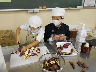 今日の五時間目、1,2年生は生活科で育てたさつまいもでふかしいもを作りました。