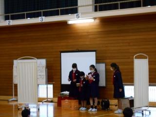 初めに、マラソン大会、科学作品、町教育奨励賞の表彰がありました。
