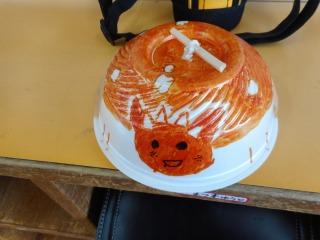 おもちゃに色を塗っています。カップ麺のカップの形や動き方を考えて、何にしようか考えています。 |
