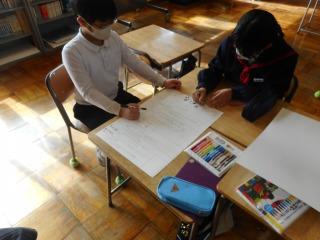 最後に10人の絵を1枚のにつなぎ、萩野台6年生絵巻の完成です。完成した作品は校内に掲示しますので、機会があればご覧ください。