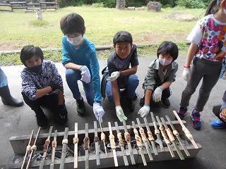 竹の棒に巻き付けたパンをU字溝の上に乗せて焼いたりしました。