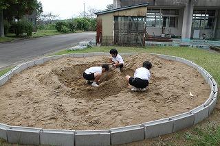 昼休み、中庭を見てみると、砂場で何やらせっせと作っていました。