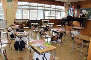 放送がなると、「安全行動1・2・3(①しゃがむ ②かくれる ③じっとする)」を実践することができました。