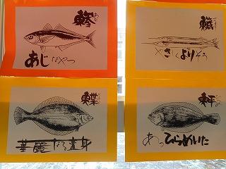 津幡町にお住まいの酒井知克さんより、魚介類の漢字をモチーフにした作品を数十点寄贈していただきました。魚偏の漢字の読み方と上手な魚の絵です。魚の絵には、ユーモアたっぷりの洒落た言葉が添えられています。魚のことがもっともっと好きになりそうです。酒井さん、ありがとうございました。