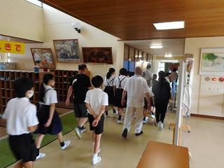 2限目に不審者対応避難訓練がありました。2、3年教室に不審者が侵入したとの想定でした。落ち着いて避難することができました。