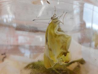 昨日は、羽化したばかりのトンボについて掲載しました。今日は羽化したばかりのモンシロチョウです。今日も、3年生が見つけて、朝すぐに職員室に来て、先生に報告してくれました。さなぎから出てきた直後だったので、まだ羽がしわしわです。
