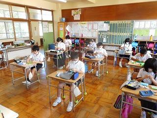 4年生が、5限目の国語の時間に、写真やテレビの画面で、ある部分を大きくうつすとり方の「アップ」と、広い範囲をうつすとり方の「ルーズ」のちがいについて学習しました。