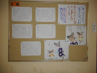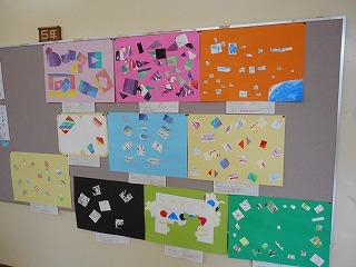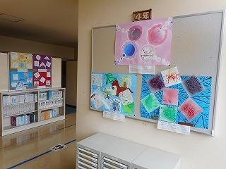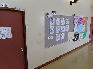 廊下にある学年掲示板に、全校のみなさんの素敵な作品が掲示されています。