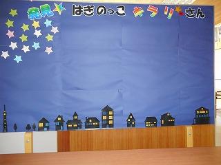 キラリさん一人一人を、星に見立て、夜空に貼っていきます。夜空がキラキラ光るキラリさんでいっぱいになればと思います。