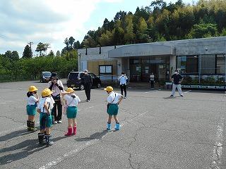 画像は、公民館の前で、館長さんのお家に行くために、車に乗るところです。