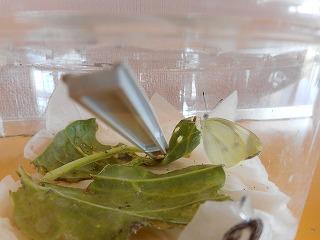 2・3年教室のモンシロチョウのさなぎがチョウになりました!卵から出て、20日ほどで成虫になりました。