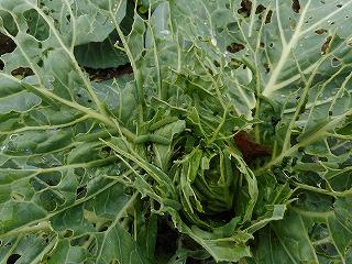 キャベツの葉と同じ色なのでわかりにくいのですが、アオムシがたくさんいます。