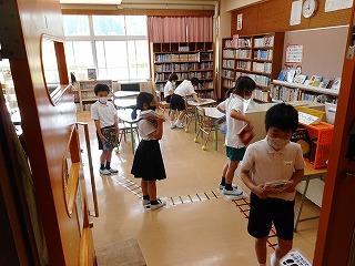 二日目の登校日(1年生は三日目)でした。図書館では、借りていた本の返却をすると同時に、これからの貸し出しや返却の仕方を確認していました。