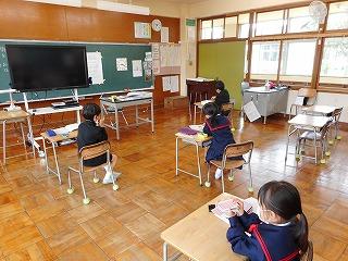 感染予防のために友達と間隔をあけています。一人でがんばる力をつくようにがんばっています。