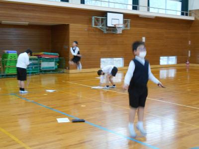 曜日ごとに学年が決められていて、長休みに体育館で該当学年の全員がなわとびを頑張ります!