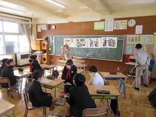 県健康福祉部の方と県救助犬協会連合会の方等4名のゲストティーチャーと犬2頭に来ていただいて、人と犬とのつながりや、犬にも心があること、犬とのふれあい方、飼うときに大切なこと等を教えていただきました。