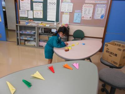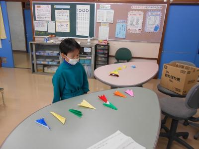 早寝早起きどちらもできた日が10日以上の人は7人、7日~9日できた人は7人で、この14人の人には、健康委員が作った折り紙の作品がプレゼントされました。