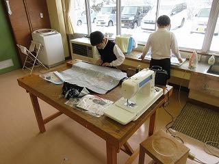 5年生は、家庭科の時間にエプロンを作っています。