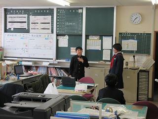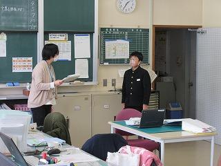 リモートでも、大勢の人の前で話す緊張感をもたせるために、職員室から多くの職員の前で行いました。
