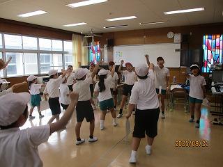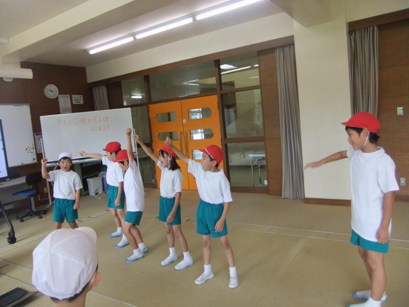 「ゴーゴーゴー」の練習です。「いくぞ!勝つぞ!」の気持ちを拳に込めて、力いっぱい歌っています。