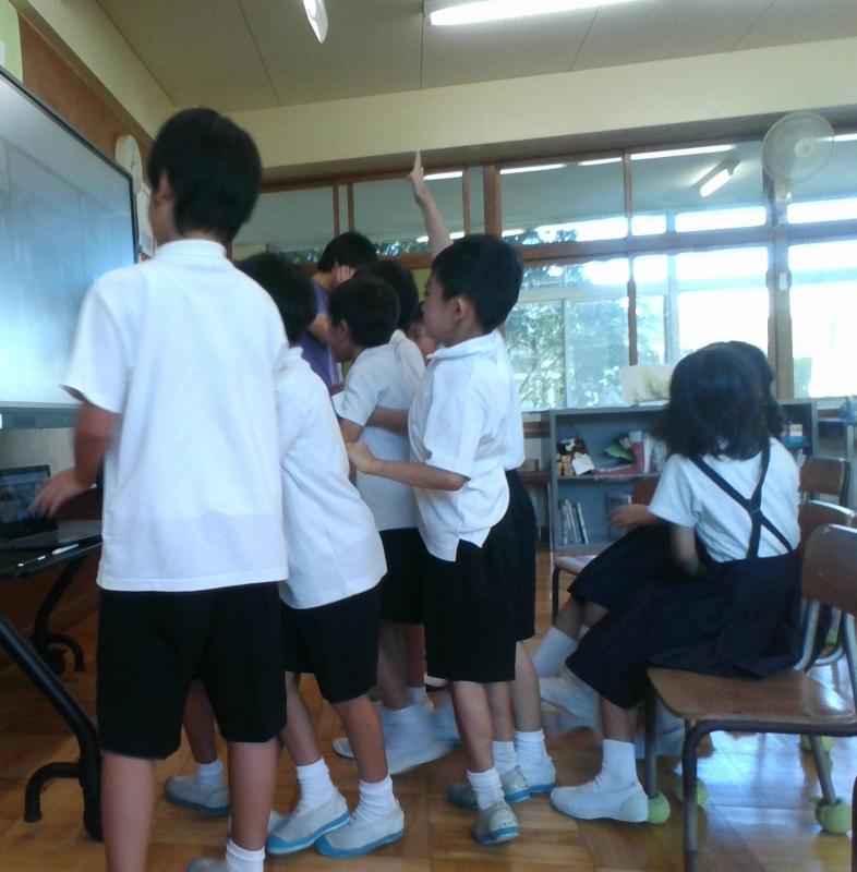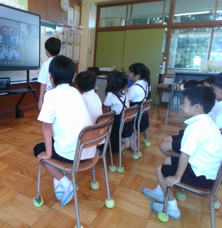 萩野台小学校、刈安小学校、笠野小学校の1・2年生で行う「あきまつり」に向け、3校でミートをつないで話し合いました。