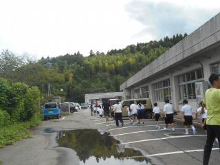 今回は、地震が起こった想定で一旦運動場に避難し、その後、土砂災害が起こった想定で、もう一度避難場所を移動する訓練を行いました。