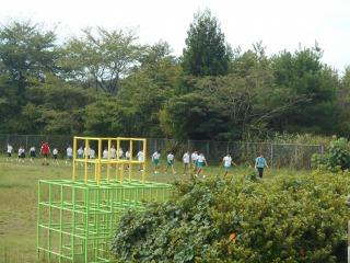 リレー練習では、4チームに分かれ半周ずつ走ります。