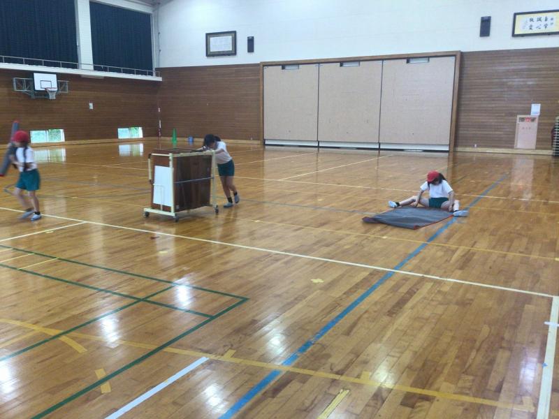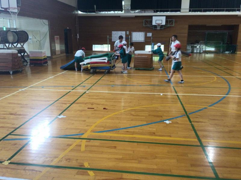 3,4年生で協力して、声をかけながら安全にするだけでなく、用具も丁寧に片づけていました。