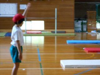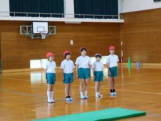 4年生は、頑張りたい技を全校児童・先生方の前で宣言してから、技に取り組みました。