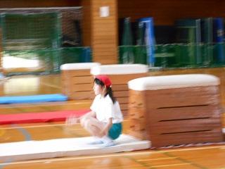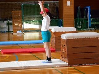 2つ目に、跳び箱で開脚跳びや台上前転を披露しました。