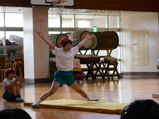 3つ目に、マット運動の技を披露しました。