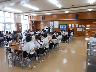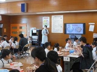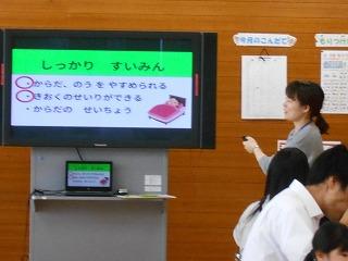 健康にすごすために、どんなことに気をつけたらよいかを、養護教諭と栄養教諭が給食時間に交代でお話ししています。