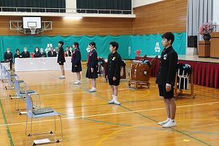 欠席の児童はおらず、全員揃って修了式、離任式を行うことができました。