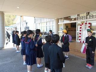 代表児童の元気な歓迎のあいさつでお迎えしました。