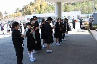 見送る在校生も立派な態度で、卒業生に感謝とお祝いの気持ちを伝えました。
