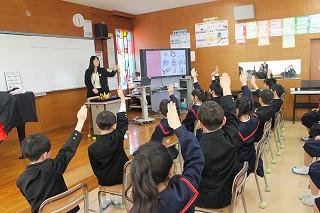 今日は、5・6年教室で早速「高学年集会」が行われました。