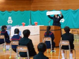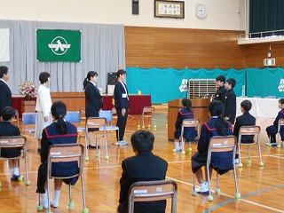 そして、修了式に続いて離任式がありました。今年度は3名の先生が離任されることとなりました。離任される先生方の思いを受け継いで、一歩ずつチャレンジをしていきましょう。