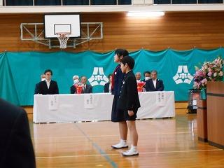 校長先生や来賓の方のお祝いのメッセージや、新6年生からの歓迎の言葉がありました。