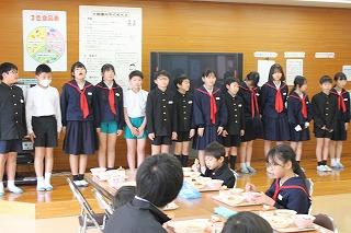 6年生と食べる最後の給食、みんな和やかな雰囲気の中、おいしくいただきました。