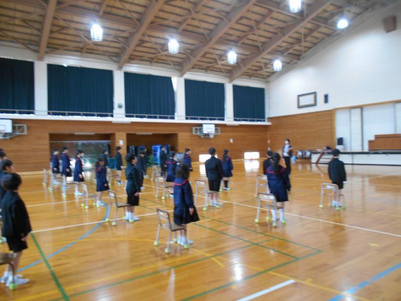 今日は体育館で卒業証書授与などの練習を行いました。