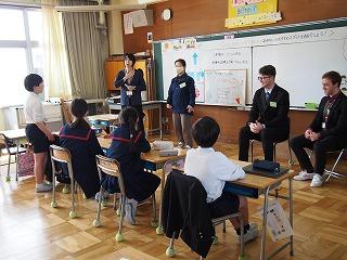 ゲストに津幡町の国際交流員の方とALTの方をお招きして楽しい授業になりました。