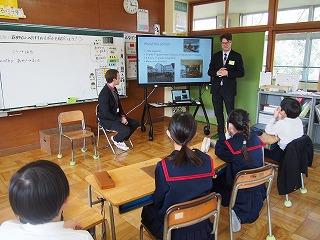 教室に戻ってお二人からアメリカのことと津幡中のことを教えていただきました。