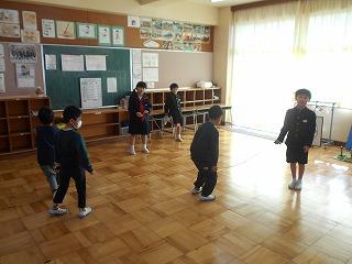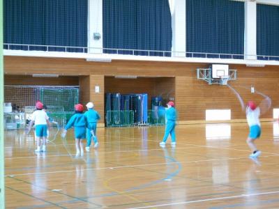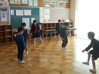 のぞいてみると、1・2年生が、ゆっくりバージョンの音楽に合わせて跳んでいました。