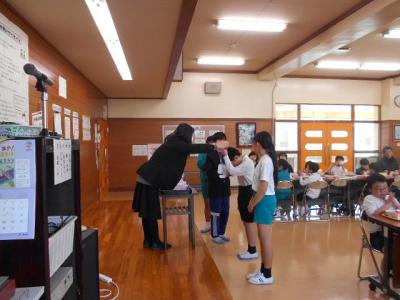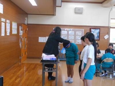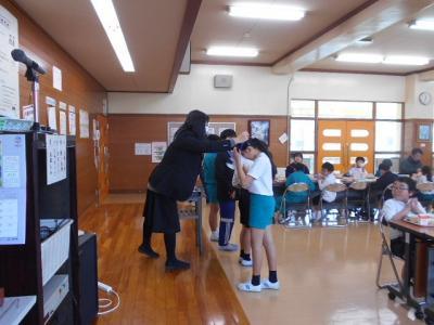 また、給食時に、土曜日に行われた町の英語スピーチコンテストの校内表彰式がありました。